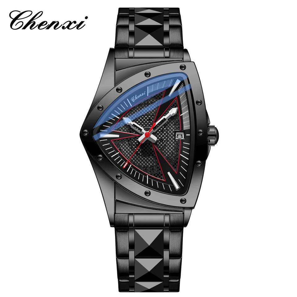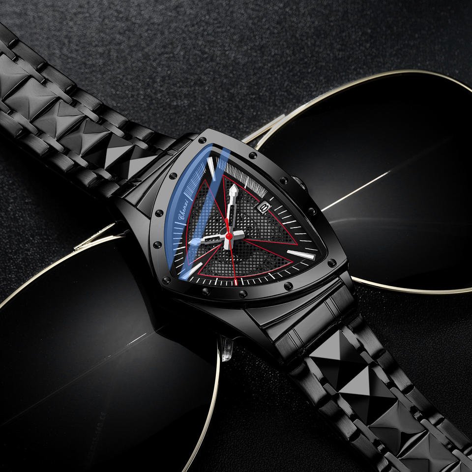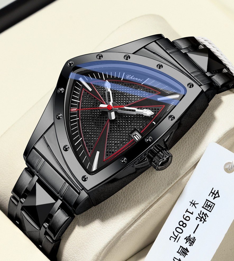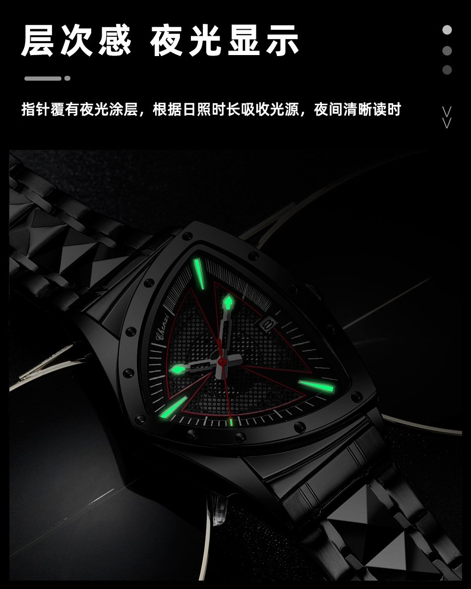 Fashion Hollow Men’s Alloy Triangle Case 37mm Stainless Steel Quartz Watch Pointer Luminous 30M Water Resistant