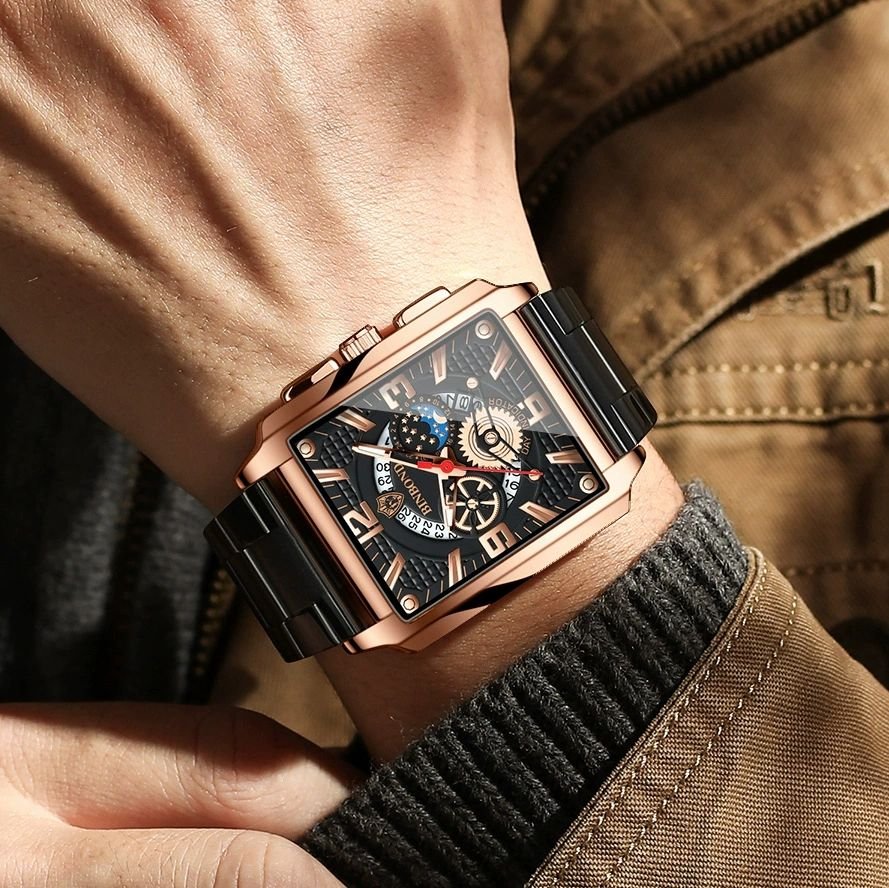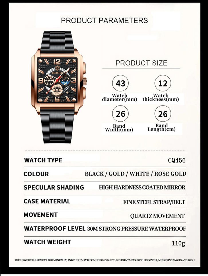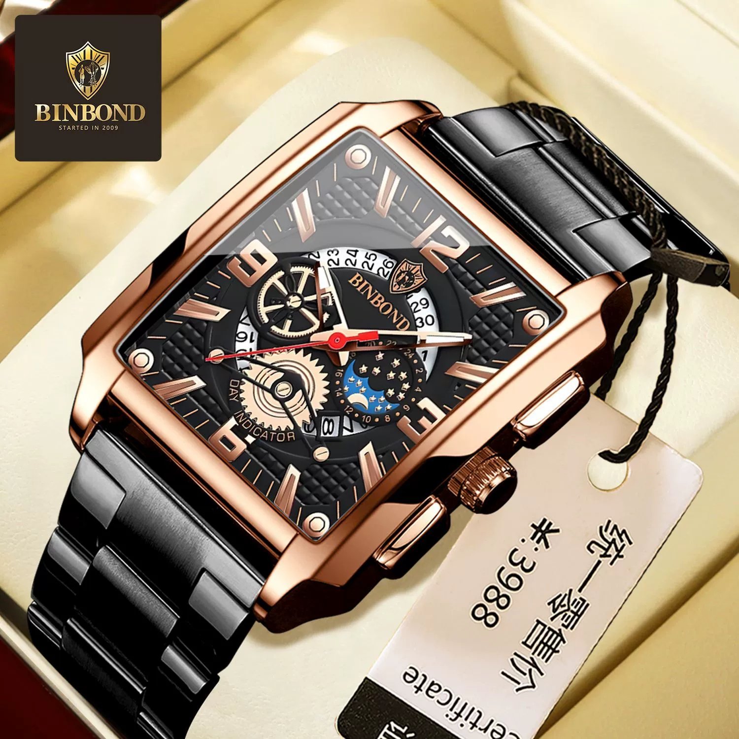 Hot BINBOND Men Watch Top Brand Luxury Business Quartz Mens Watches Waterproof Hollow Out Wristwatch Men Gold Relogio Masculino