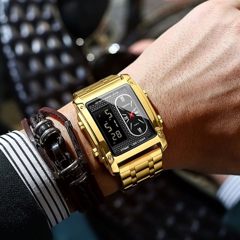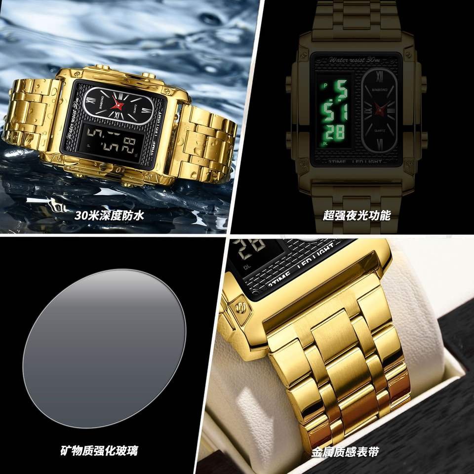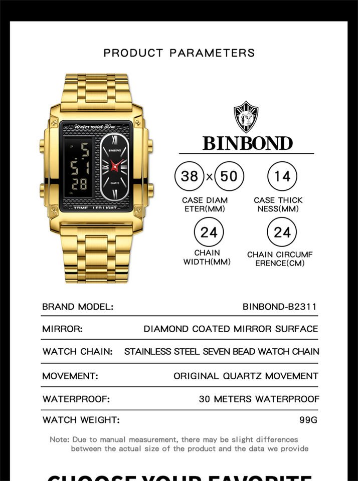 Hot BINBOND Men Watch Top Brand Luxury Business Quartz Mens Watches Waterproof Hollow Out Digital Watch Gold Relogio Masculino
