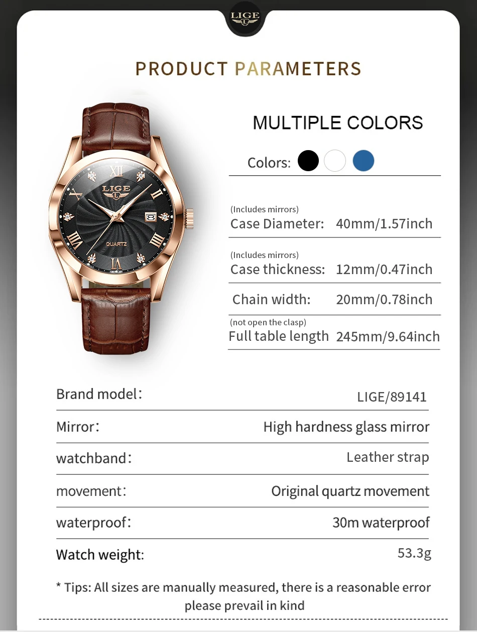 | color | A – black brown, B – white brown, C – silver black, D – black, E – blue brown, F – rose gold brown, G – white rose gold, H – rose gold blue |